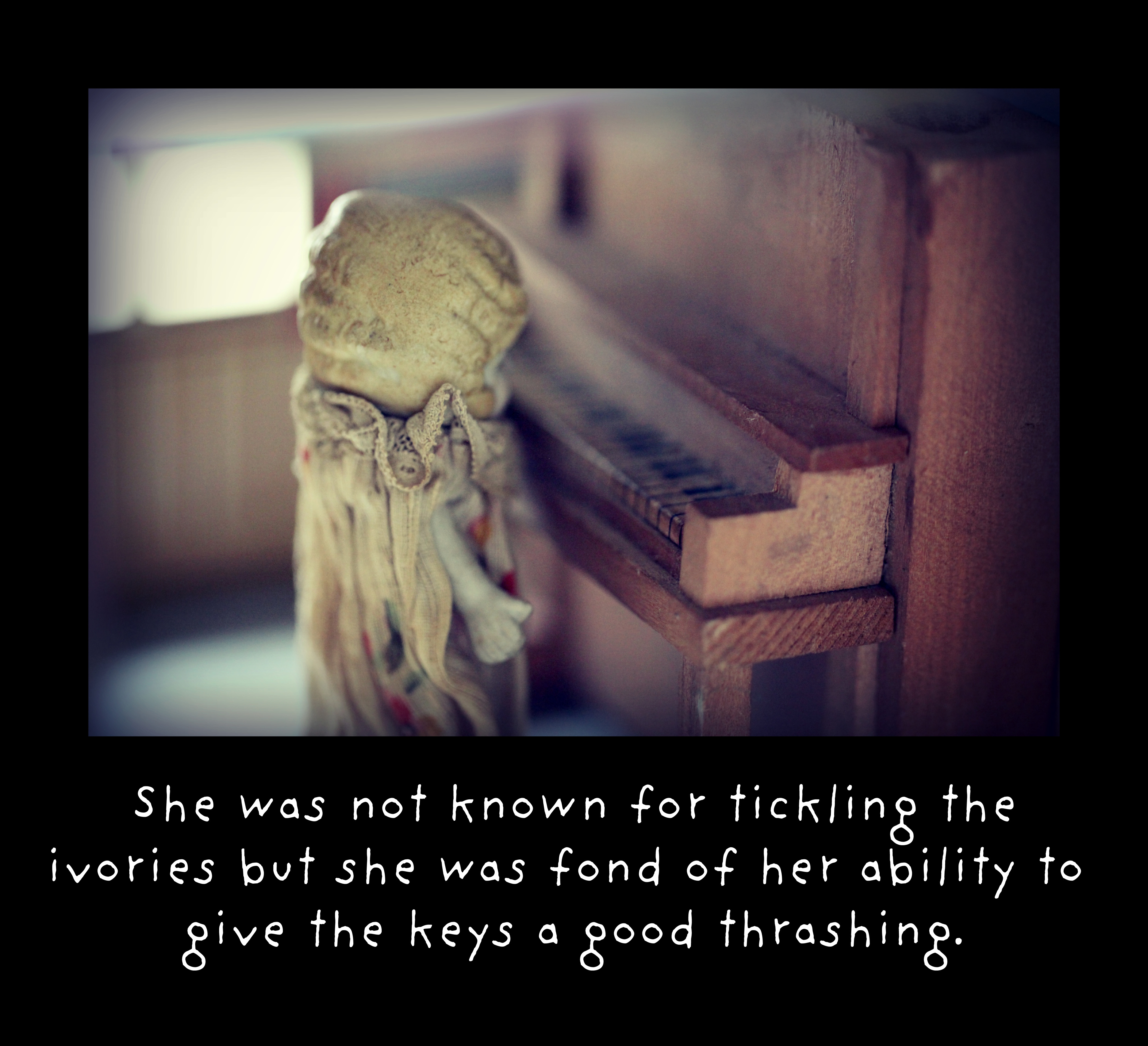 2. She has a look here, as she stares down at the piano keys, of gathering her strength to do just that – give them a good thrashing! I love this little scene.